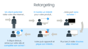 Lorsqu’un internaute visite votre site, un cookie est téléchargé sur son navigateur. Lorsqu’il se rend sur d’autres sites et sur les réseaux sociaux (Facebook, Twitter, LinkedIn, etc.), ce cookie est analysé par les annonceurs de ces sites. Une fois identifié, le visiteur voit s’afficher des publicités de retargeting qui le dirigent vers votre site web.